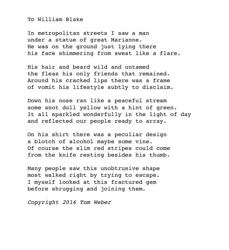 Mein zweites Gedicht welches ich im Rahmen der Gedichtekollaboration zwischen Sophie und mir geschrieben habe, ist dem Engländer William Blake gewidmet, der Autor des wahrhaft meisterlichen Gedichtbands „Songs of Innocence and of Experience”.